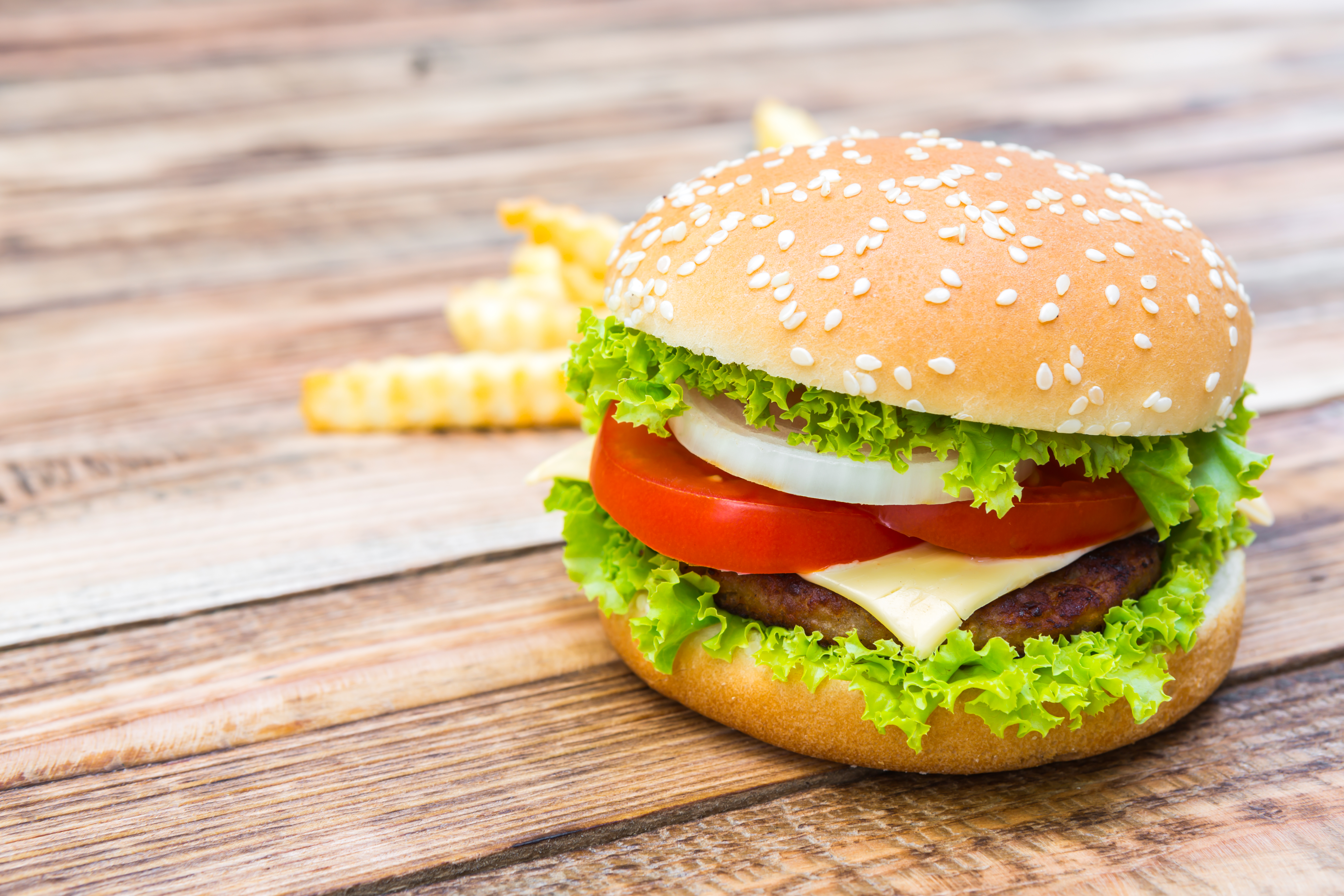 Beef, lettuce, tomato, onion, mayo & cheese. Served with fries.